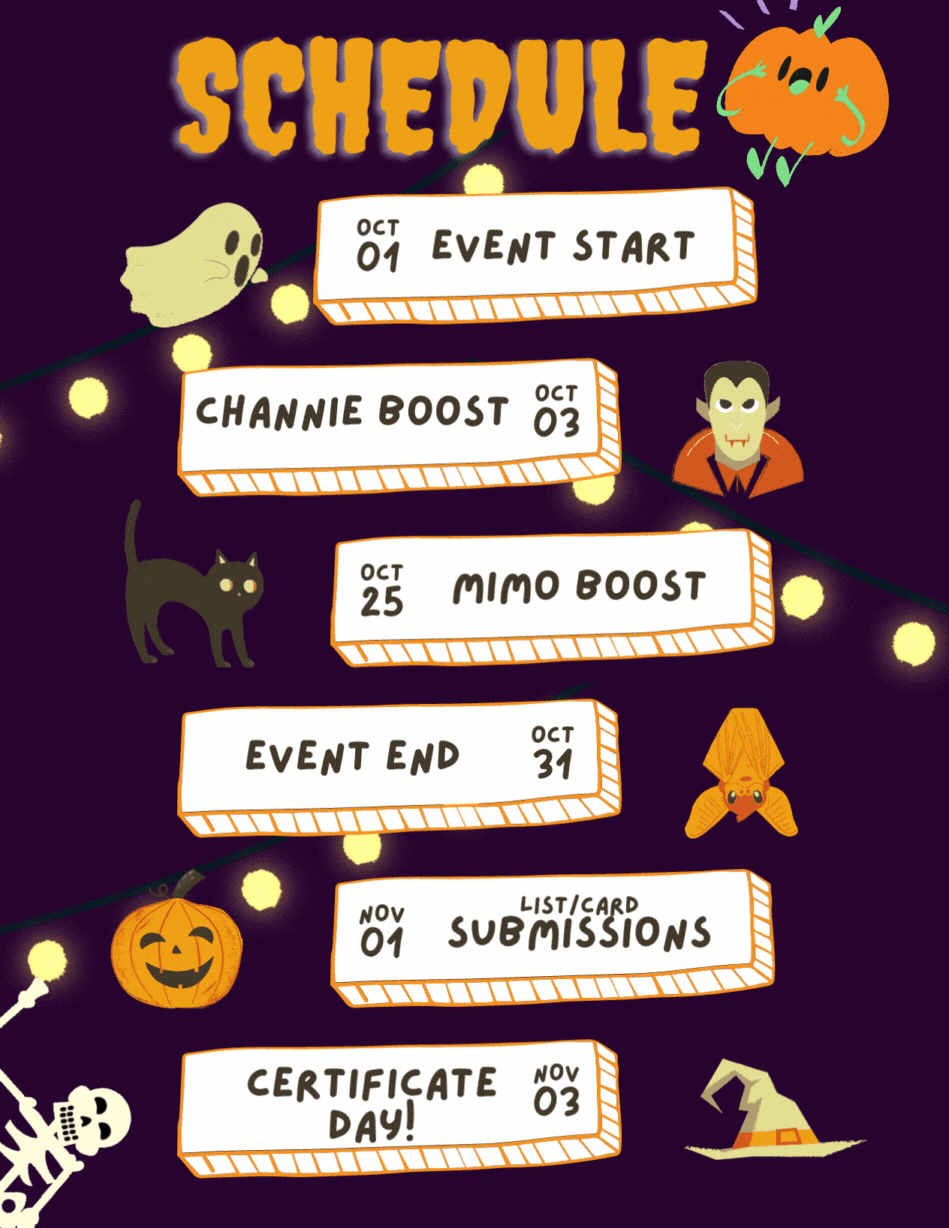 1. SAVE THE LIST OF TROPES/THEMES WE WILL PROVIDE. We will provide the same list/card for everyone to use.2. ENJOY CREATING CONTENTS! Create as many or as little MinChan contents you want based off of the tropes/themes provided. (art, fic/au, edit, etc.)3. CROSS OUT THE TROPE/THEME. Cross out the words you would use for every content you make. Make sure to attach the updated list/card on every promotional tweet.4. SUBMIT YOUR LIST/CARD. You can submit your final list/card on the Google Form on or before Oct 31 23:59 KST.